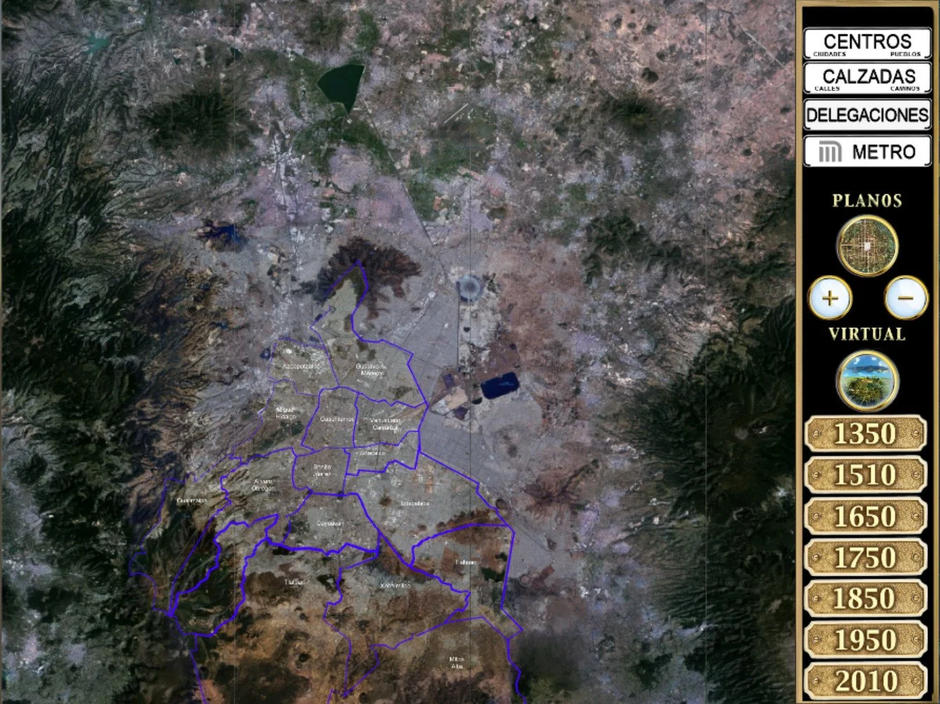 App where visitors could explore the Basin of Mexico in 700 years of evolution, and compare side-by-side views to compare different epochs.